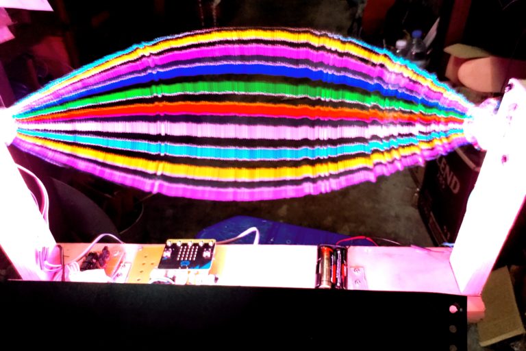 https://youtu.be/Ahn-94vFZT0ภาพติดตา ปกติเมื่อมีแหล่งกำเนิดแสงส่องไปยังวัตถุเราจะเห็นวัตถุเป็นสีของแสงที่ส่องมา เช่นหลอดสีแดงวัตถุก็จะเป็นสีแดง ถ้ามีแหล่งกำเนิดมากกว่าหนึ่งสี เช่นทั้งแดงและน้ำเงิน เราจะไม่เห็นทั้งสีแดงและน้ำเงินบนวัตถุ แต่จะเห็นสีม่วงแทน การทำให้น้ำเกิดเป็นสีต่างๆตามที่เห็นในภาพเราจะต้องเปิดและปิดไฟแต่ละสีในช่วงเวลาต่างกัน ด้วยคุณสมบัติของตามนุษย์ที่สามารถจำภาพเก่าไว้ได้หรือที่เรียกว่า”ภาพติดตา”เราจึงเห็นดังภาพ การเขียน Code จะต้องทำสองส่วน ส่วนแรกต้องจับความเร็วการหมุนของเชือกแต่ละรอบ ส่วนที่สองสั่งให้หลอดไฟติดและดับทั้งกลุ่มที่กำหนดตามการหมุนแต่ละรอบก็จะได้ภาพออกมาตามที่เห็นครับ